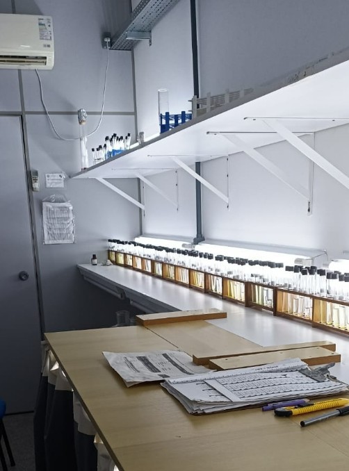 O acervo reúne atualmente 53 cepas, sendo 47 provenientes de ambientes dulcícolas e 6 de ambientes marinhos. As culturas são mantidas em sala de cultivo climatizada, sob condições fisiológicas subótimas, com renovação periódica a cada um ou dois meses, garantindo a viabilidade metabólica prolongada das cepas. O banco inclui culturas unialgais e axênicas obtidas por diferentes métodos de isolamento e purificação, assegurando a qualidade do material biológico disponível.